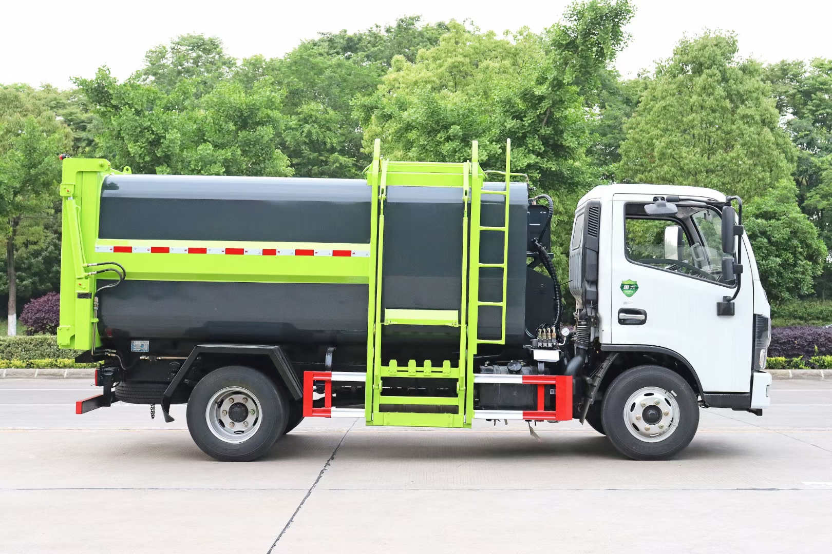 垃圾箱體:箱體采用邊3底4優(yōu)質(zhì)碳鋼制作,內(nèi)外防腐防銹,密封性好,運(yùn)載量大,安全節(jié)能環(huán)保,帶液壓開啟后門。