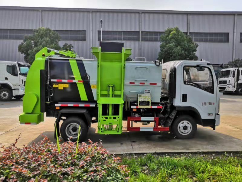 泔水裝載由垃圾桶提升系統完成,該系統具有垃圾桶鎖止結構,裝卸安全可靠。垃圾桶與垃圾投入口銜接好,保證裝卸過程中餐廚垃圾不溢撒、不遺漏。垃圾投入口與推板之間有足夠距離,推板與罐體內表面設有密封裝置,避免餐廚垃圾投入過程及分離過程中溢到推板后方。 液壓系統由泵、液壓閥和順序閥以及各種功能的液壓油缸、高低壓管路組成。關鍵部件可選用原裝進口,保證產品工作可靠、安全。