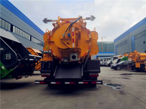 清洗部分:3方水箱,采用4mmQ235優(yōu)質(zhì)碳鋼板,水箱兩側(cè)消防接口進(jìn)水,工具箱一個(gè)。采用德國(guó)品浮高壓泵215升流量,22兆帕,配60米內(nèi)徑19#高壓管,10個(gè)大小不同噴頭一套, 后置式清洗卷盤,帶淋管裝置(用于淋洗高壓管疏通管道過后上面殘留的污物),帶氣吹水功能(用于吹出每次高壓管工作完以后內(nèi)部殘留的水漬,防止天冷結(jié)冰影響下次使用)