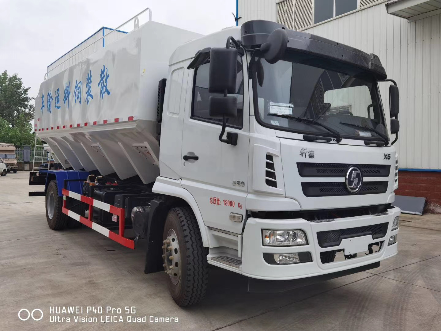 上裝配置:有效容積22-24方,可裝12-14噸,標(biāo)配3倉(cāng),電動(dòng)絞龍卸料,卸料管傾斜60度,垂直卸料高度8.5米,整車(chē)卸料用完時(shí)28分鐘。