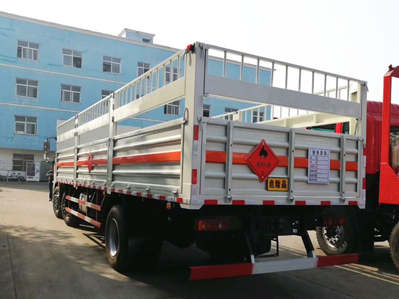 該車為危險品貨物運輸車,用于運輸具有**容器(瓶)包裝的易燃氣體(罐(瓶)裝壓縮氫、液化石油氣),類項號為2.1,和非易燃無毒氣體(罐(瓶)裝二氧化碳,氧氣,氮氣,氬氣),類項號為2.2.選裝貨箱側(cè)板、后門結(jié)構(gòu);選裝箱體結(jié)構(gòu).側(cè)防護:材質(zhì)Q235,螺栓連接;后下防護:材質(zhì)Q235,螺栓連接,斷面尺寸120X60mm,離地高度540mm;安裝具有衛(wèi)星定位功能的行駛記錄儀.裝有ABS,ABS型號:3631010-C2000,生產(chǎn)廠家:東科克諾爾商用車制動系統(tǒng)(十堰)有限公司.選裝前霧燈,駕駛室頂部裝飾燈為選裝件.僅選用前盤式制動器,前置排氣管,子午線輪胎,限速裝置的底盤,限速80km/h. |